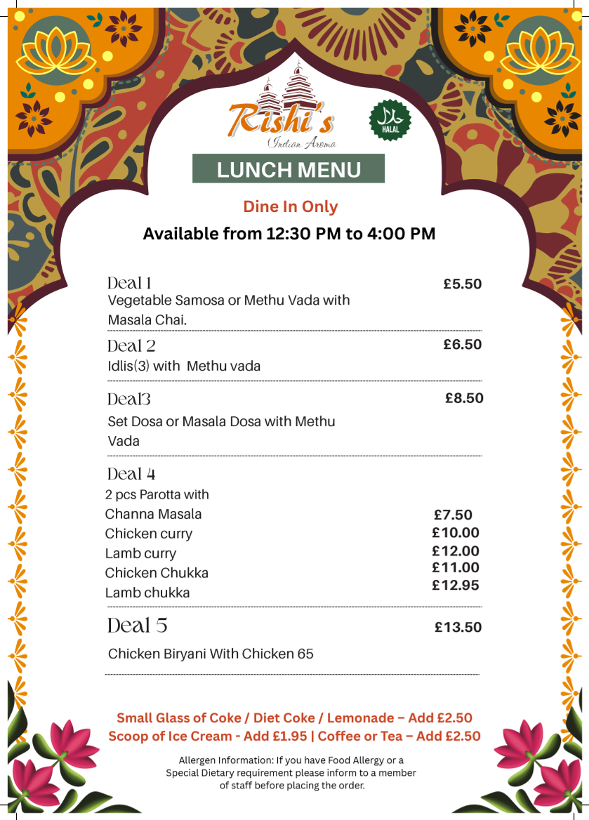 In conclusion, Rishis Indian Aroma in Stirling is a must-visit for anyone seeking a delicious, authentic Indian dining experience. With its diverse menu, welcoming atmosphere, and consistent quality, it’s a standout in Stirling's dining scene.